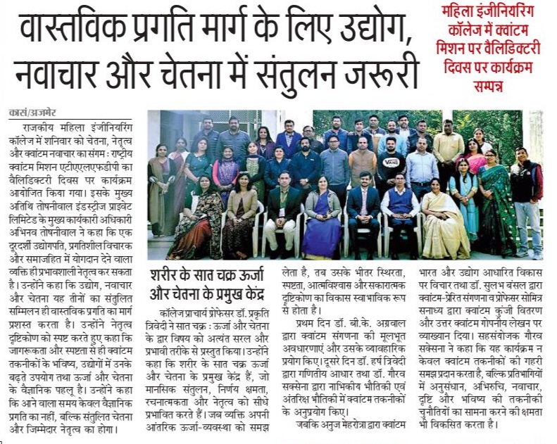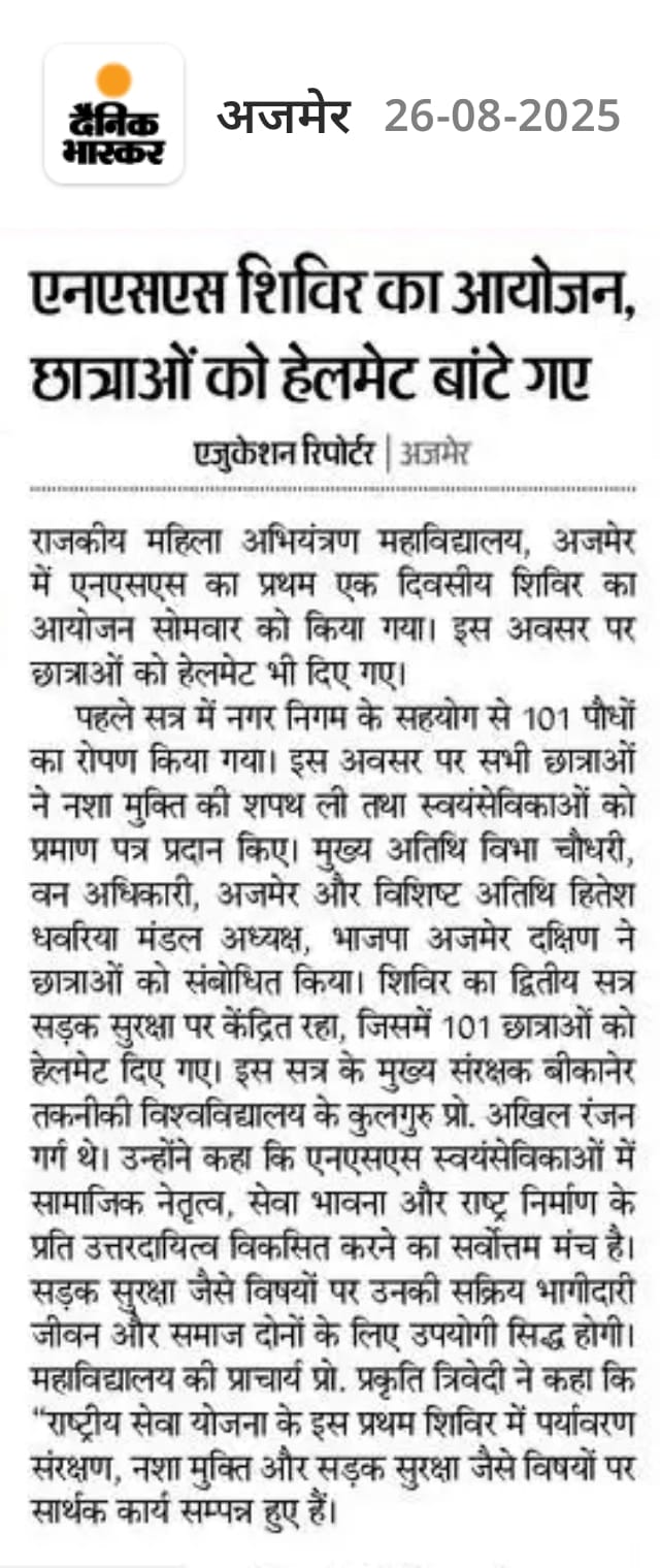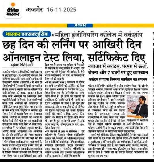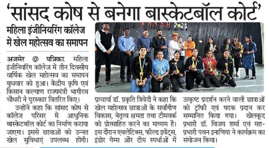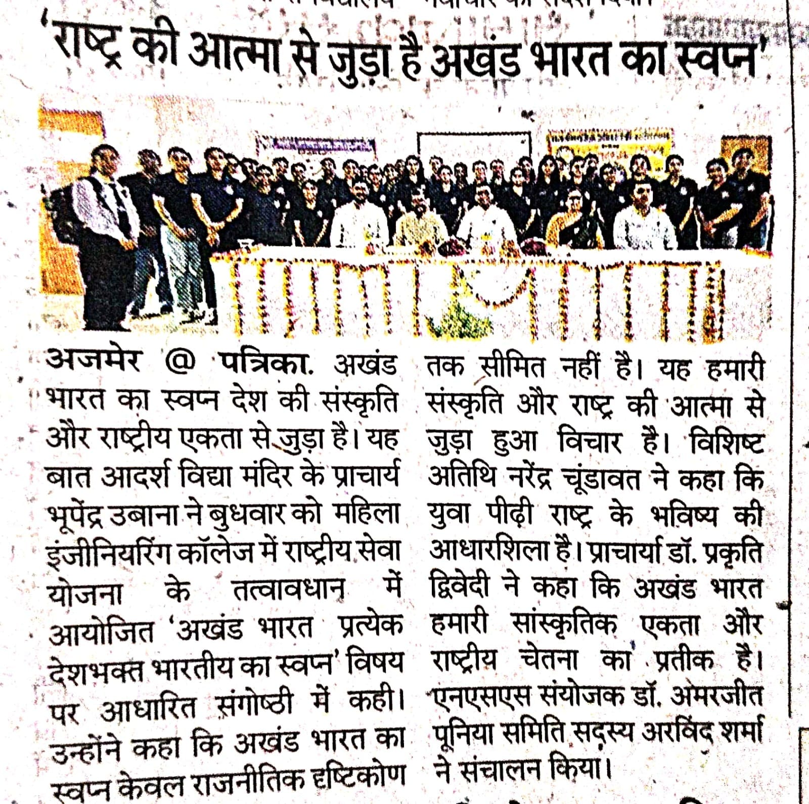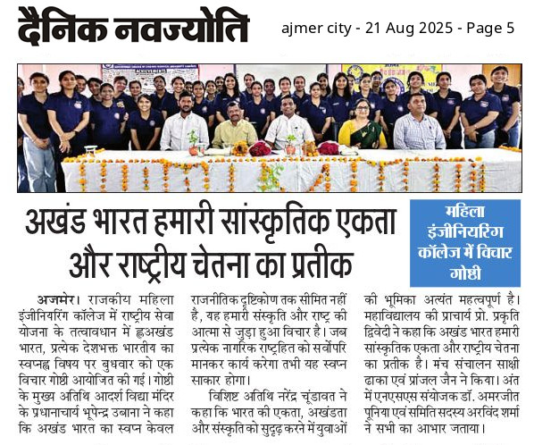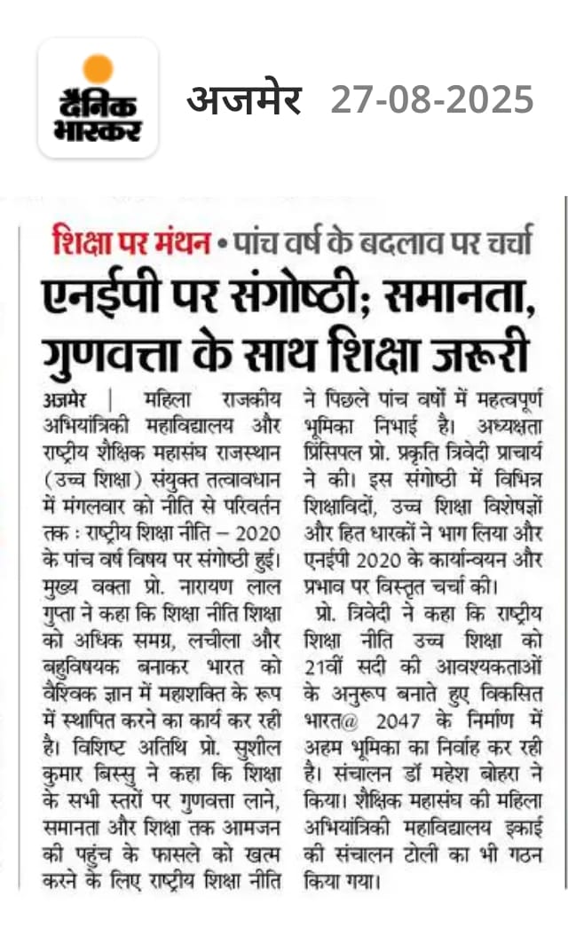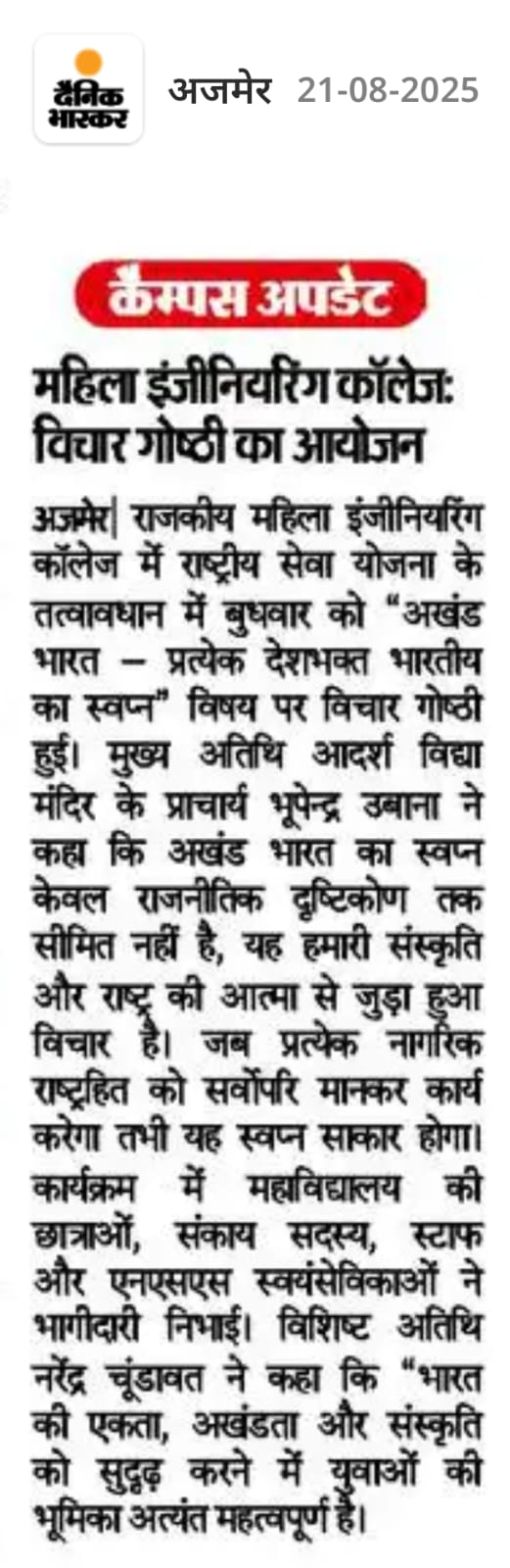 I welcome you to our institute where people feel proud to be a part of it. It is Mahila Engineering College, Ajmer where the Education is imparted to its pupil in such a way to make it an integral part of their life, rather than making it a mere tool for survival of the life.