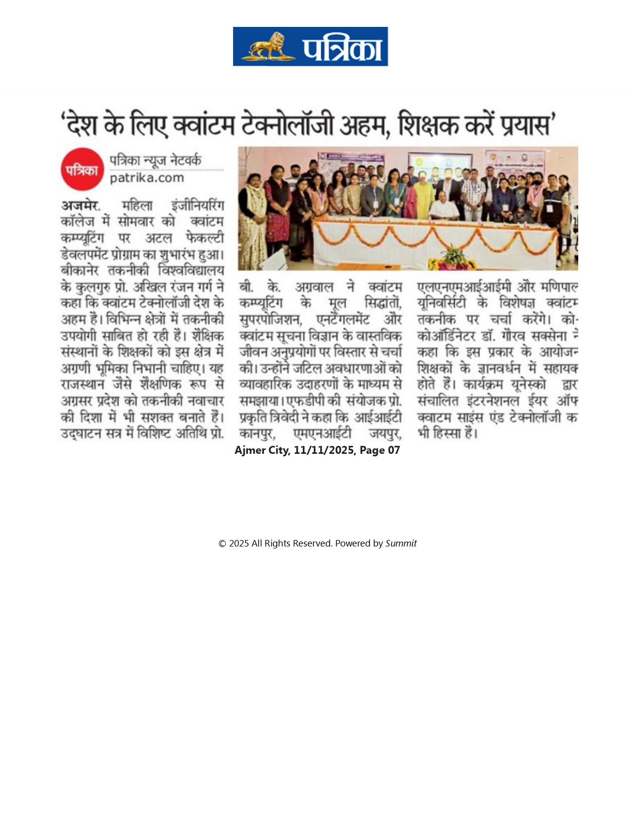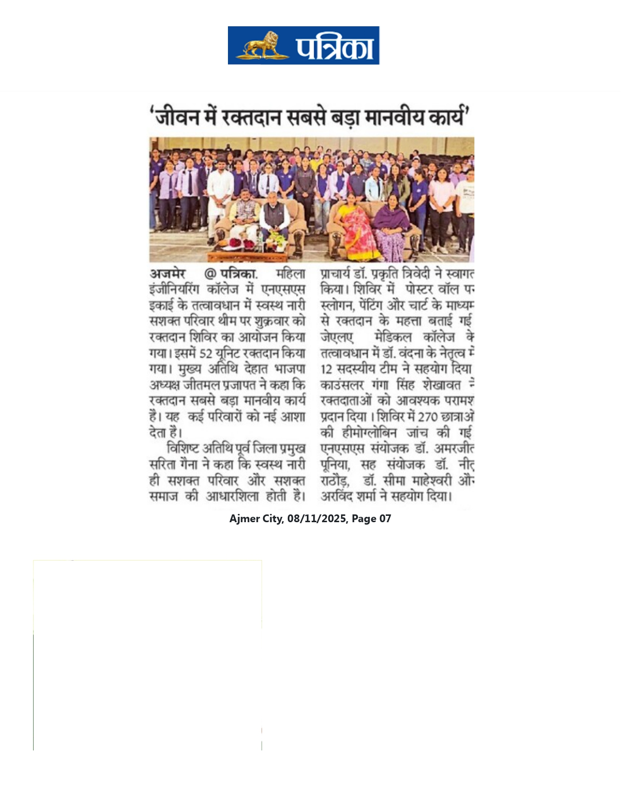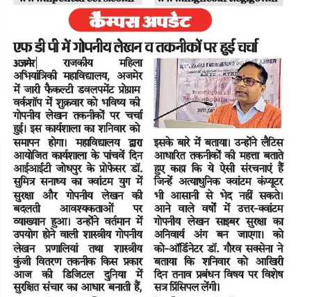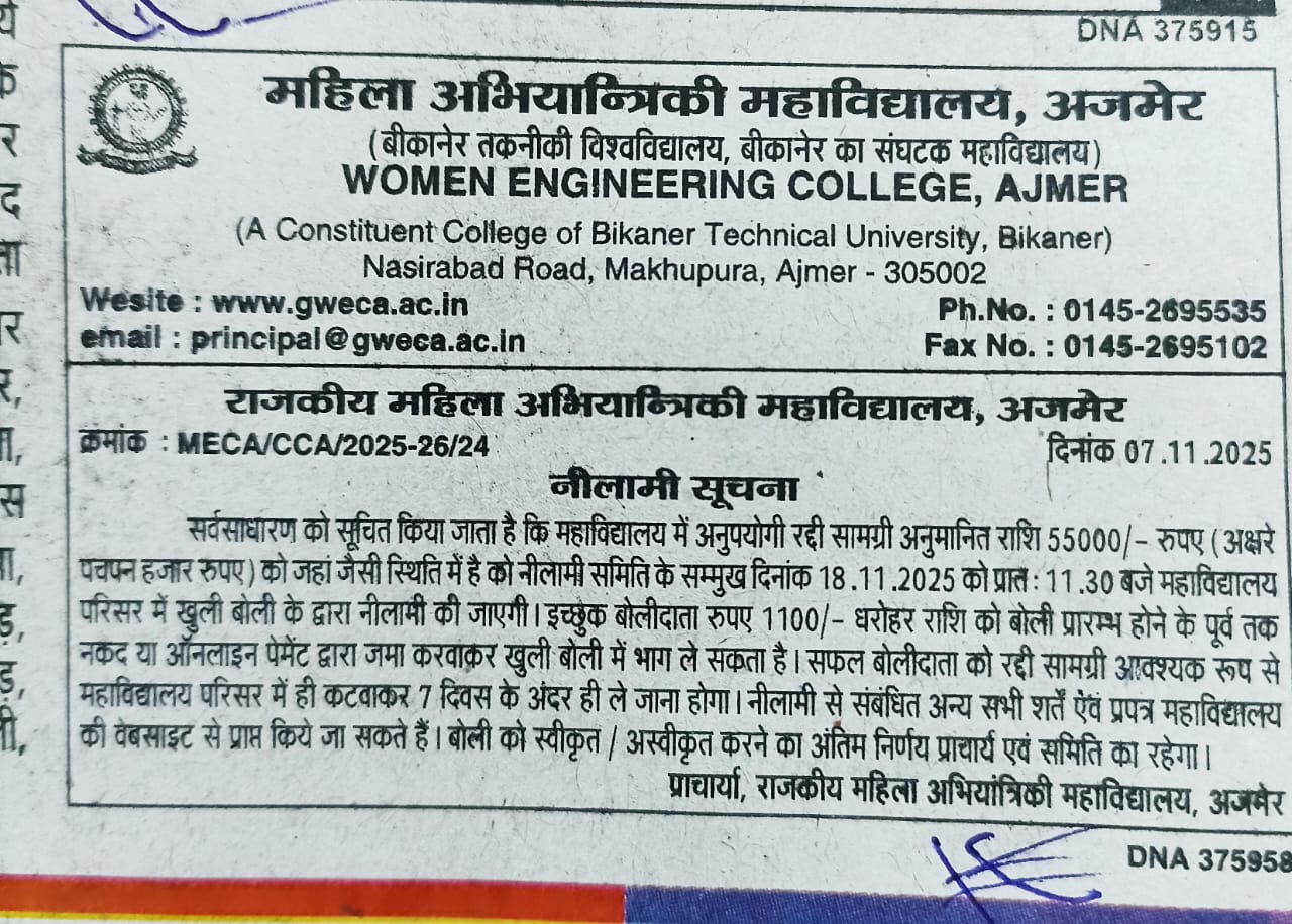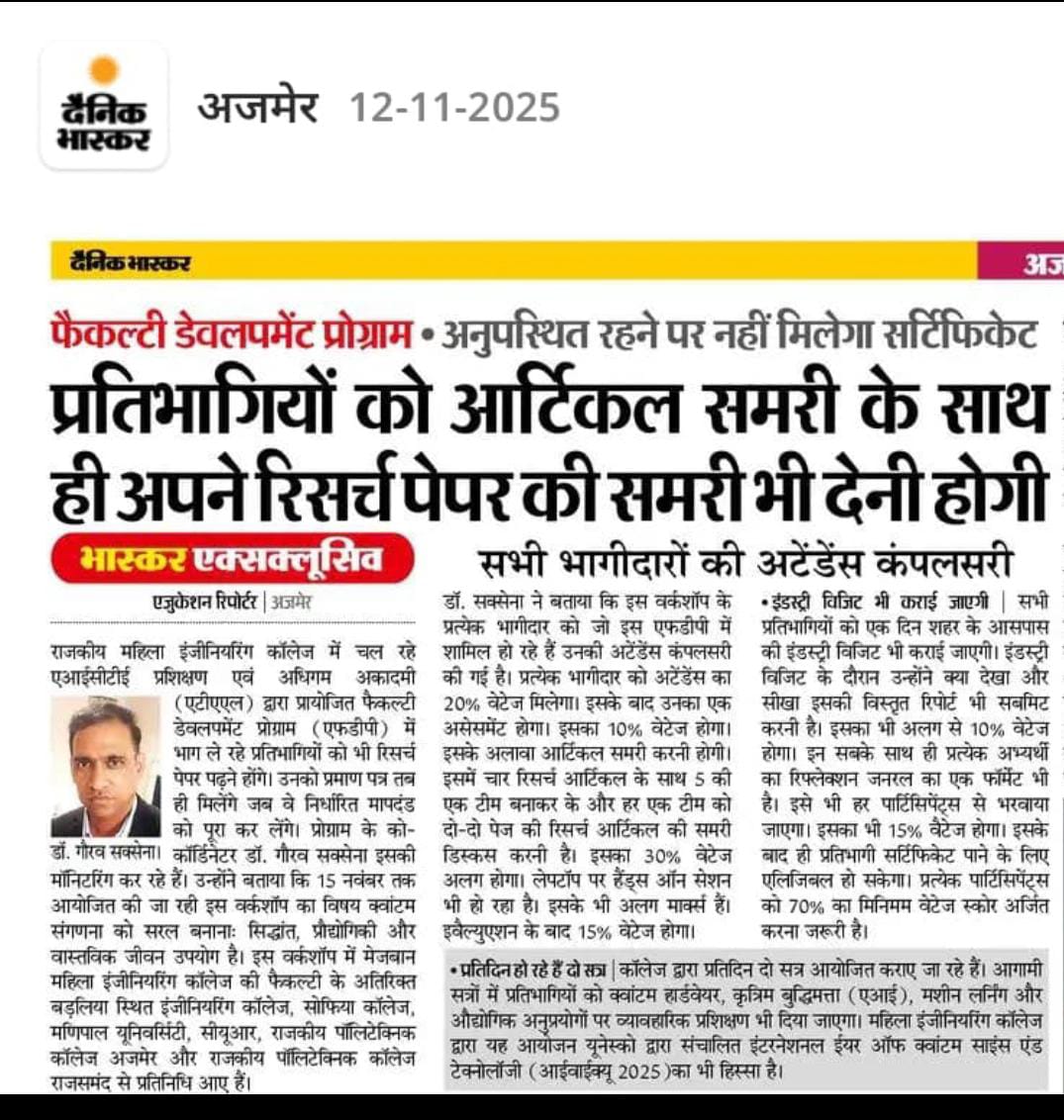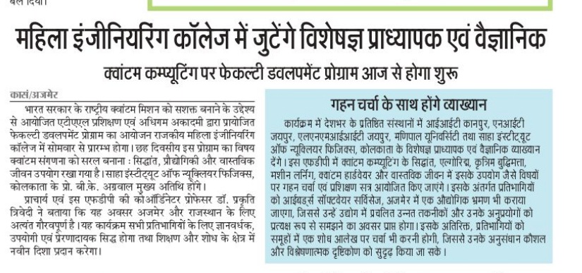 I welcome you to our institute where people feel proud to be a part of it. It is Mahila Engineering College, Ajmer where the Education is imparted to its pupil in such a way to make it an integral part of their life, rather than making it a mere tool for survival of the life.