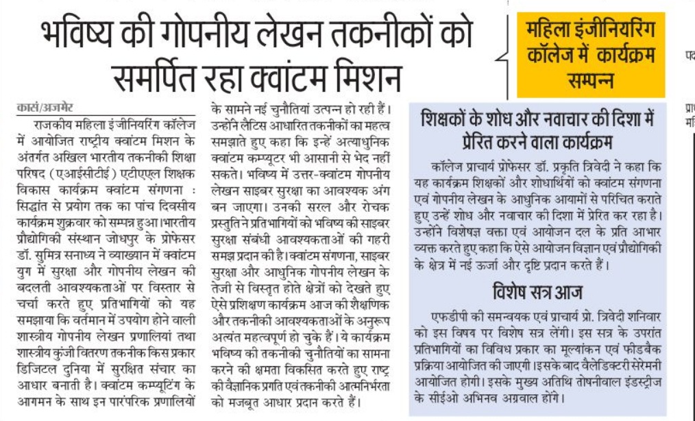 2. To promote women technocrats to make a meaningful contribution by creating a pool of talented human resource - who are capable enough to resolve the problems faced by the country using the knowledge imparted, talent inculcated and the research which we do.