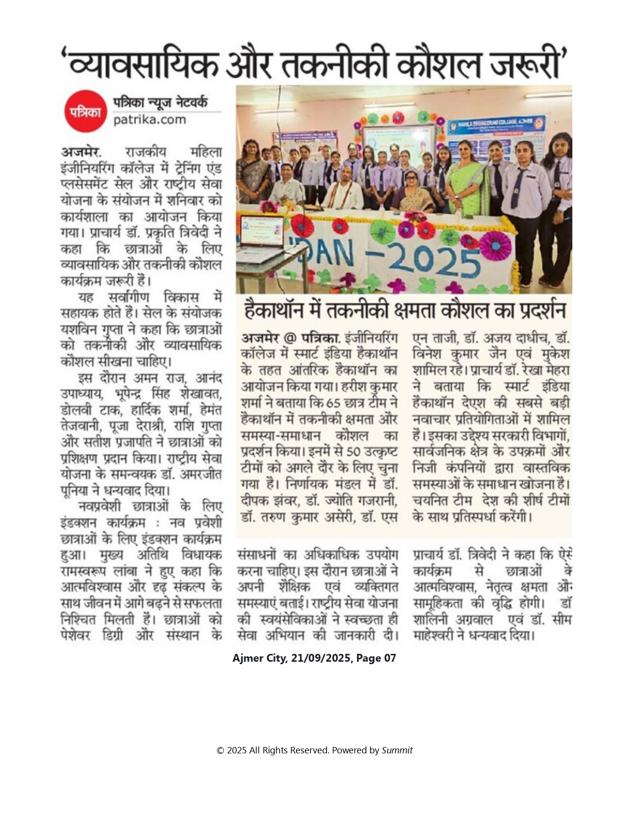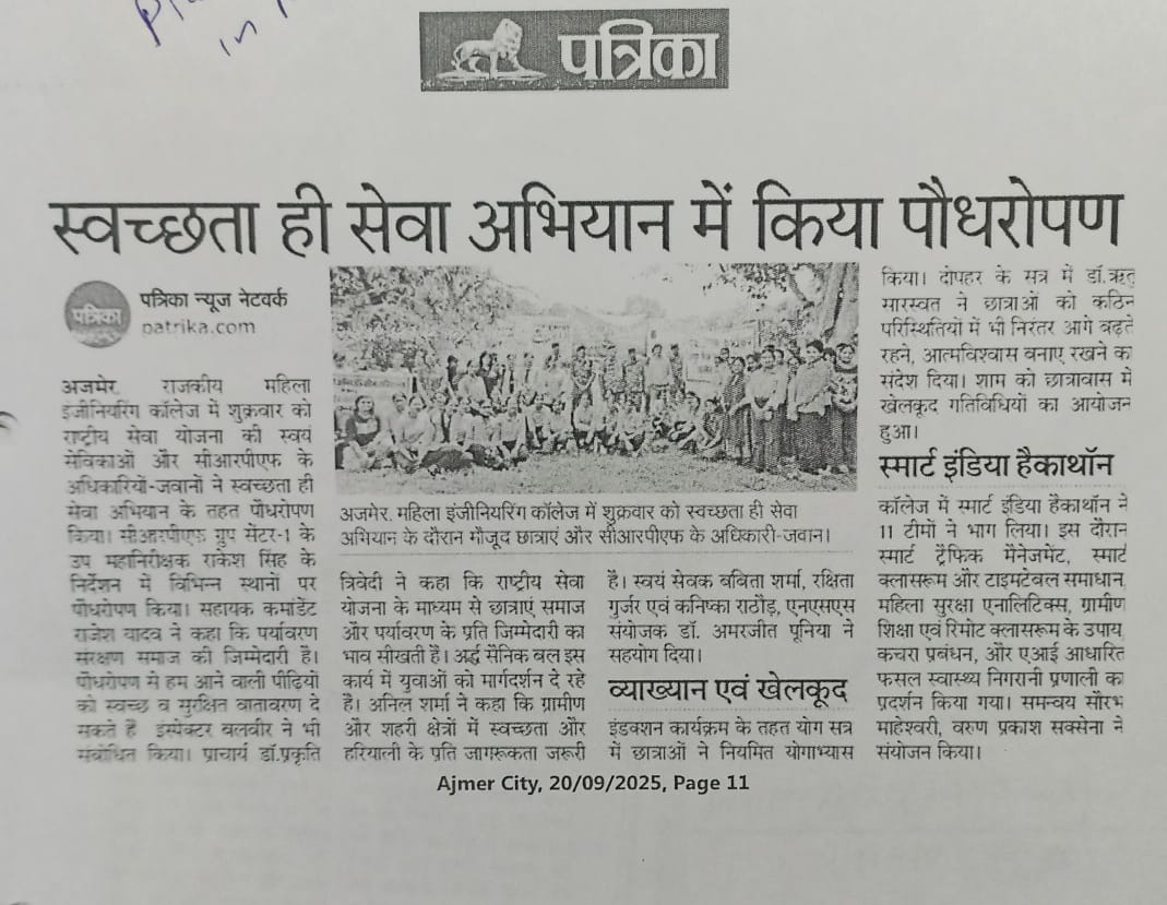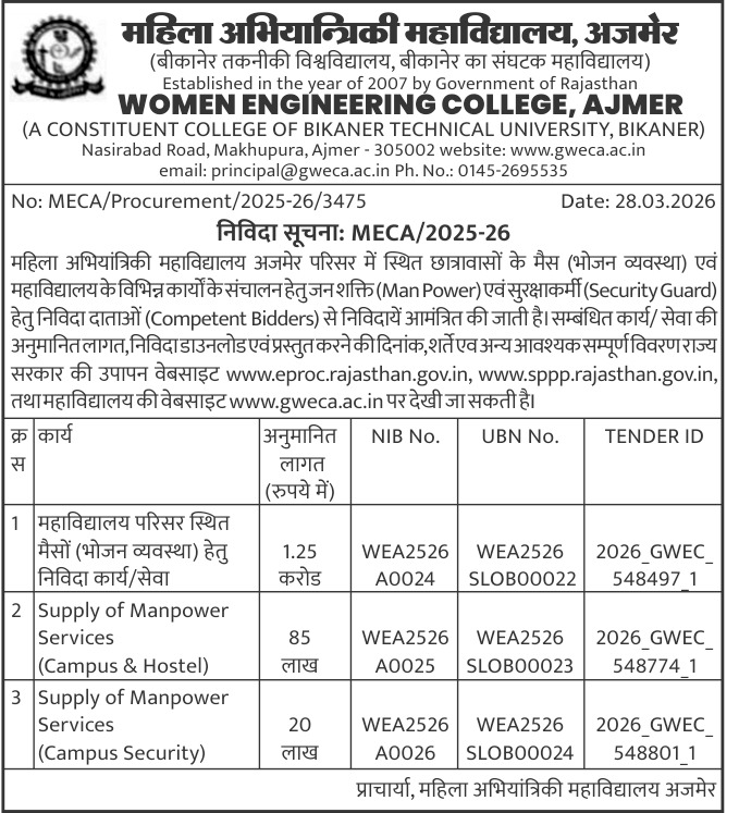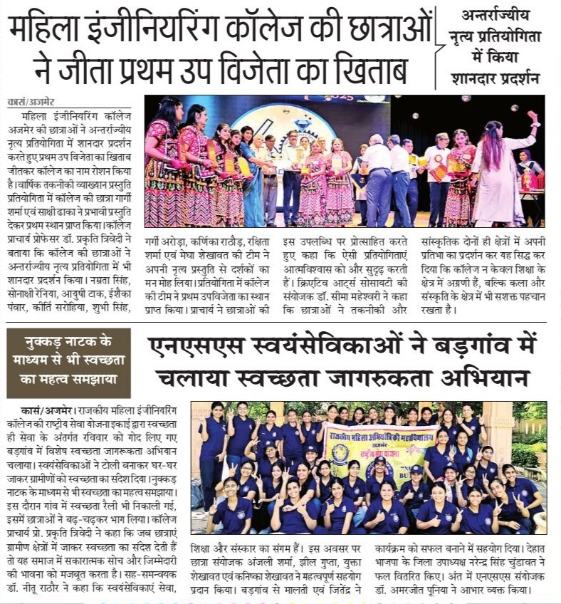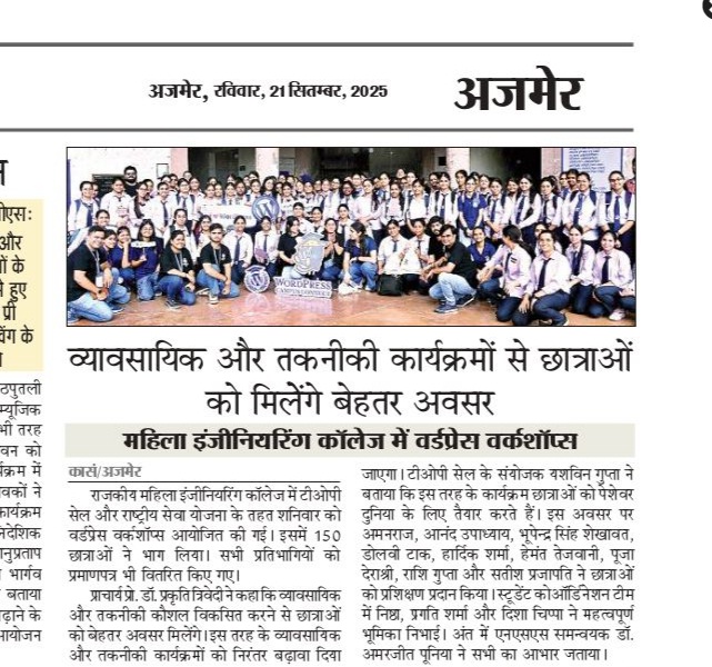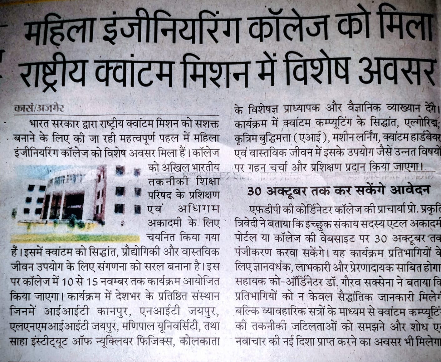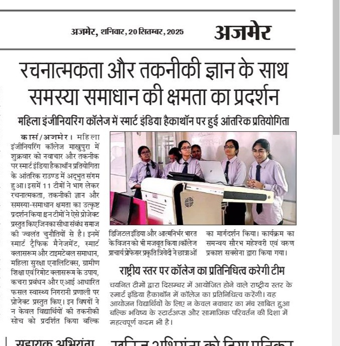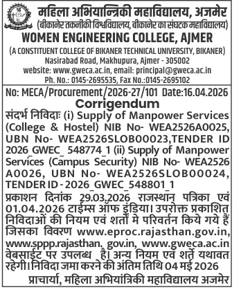 I welcome you to our institute where people feel proud to be a part of it. It is Mahila Engineering College, Ajmer where the Education is imparted to its pupil in such a way to make it an integral part of their life, rather than making it a mere tool for survival of the life.