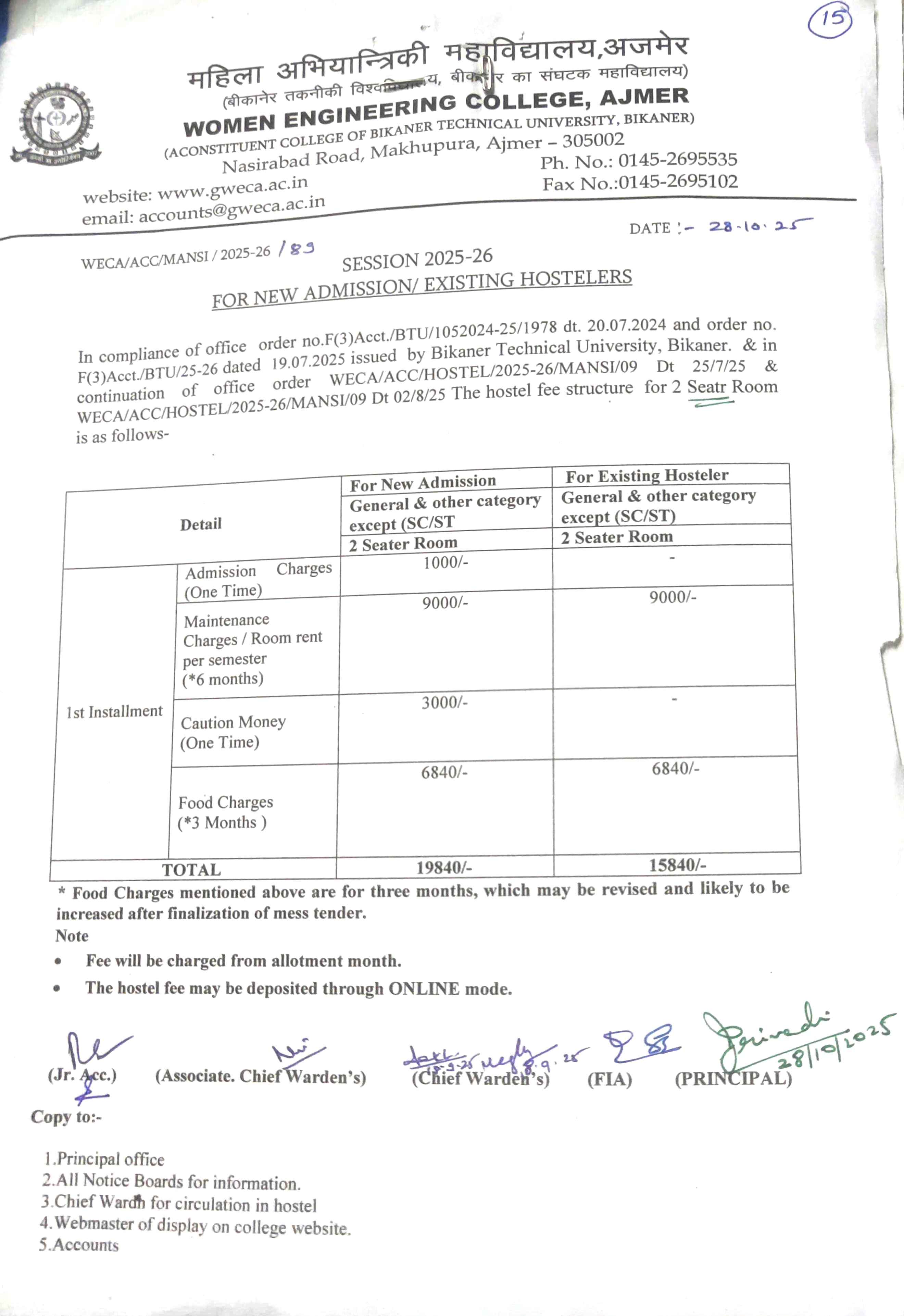 | 17. | Hostel Rules and Undertaking 2025 (available on college website) | 18. | Category certificate ( if applicable) | 19. | Vaccination certificate |